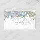 Ett gräns av Iriscent glitter betonar ditt namn och yrke på affärskortet för elegant. Denna enkla men elegant-utformning fungerar bra för alla professioneller: evenemangssamordnare, landskapsdesigners, organisatörer, finanskonsulter, stilister, estetiker osv. Alla som vill ha ett sofistikerat, glam letar efter sitt kort. Lägg till din personliga kontaktinformation på baksidan med hjälp av den angivna mallen.