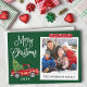 Modern Roligt Calligraphy Script Watercolor Vintage Red Lastbil med Julgran, Instant Camera Stil Photo God jul Card - Forest Grönt Background och Red & White Snöflingor Craft Tape Tape Tape Tape