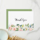 Det här enkla grönten bröllop i blommigt är ett tack för perfekten för ett tropiskt bröllop. Utformningen har en underbar vit, rosa och handmålad ro inbäddad i gröntens blad, inspirerande konstnärlig skönhet. Anpassa kortets insida med namn och ett tackmeddelande. Du kan också lämna tackmeddelandeavsnittet tomt och lämna skrivan en personlig på varje kort. De här platta korten kan användas till en bröllop, en babydusch eller när du vill tacka.