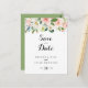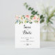 Den här enkla blommigten-kalligrafi som används för att spara datumvykortet är perfekt för ett elegant bröllop. Utformningen har en underbar vit, rosa och handmålad ro inbäddad i gröntens blad, inspirerande konstnärlig skönhet.