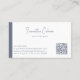 Enkel, minimalistisk modern kalligrafi med vitt och blått grått på blå grått och vit bakgrund. QR-kod för ytterligare information.