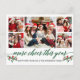 Modern Calligraphy Script 5 Photo Family Photo Collage More Cheer Det här årets vykort för Helgdag innehåller Watercolor Holly Berries - Grönt ScriptGlad nyår 2022