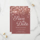 Skapa din egen moderna stil bröllop spara datum. Faux glam glam kant på glam, glam, ro, vid guld, på en solid, örnröd bakgrund. Hela struktur i i form av skal, gnistra, metall och glitter skapas med en tryckt digital grafisk bild. Teckensnittet stil och färg kan anpassas.