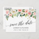 Kalligrafi Rosa vit Blommigt Spara datum Vykort