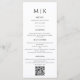 Enkel Calligraphy Rustic Bröllop QR Code Menu Den här eleganten, moderna blöjor för bröllop eller möhippa har en enkel svartvit textdesign som exuderar minimalistiskt stil. Lägg till initialer eller monogram för att göra dem helt egna.