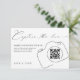 Det här snyggt-kortet har elegant-calligrafi och en unik QR-kod som sömlöst blandar modern teknik med tidlös design. Kortet är konstruerat av premiummaterial och ger gästerna ett elegant utseende samtidigt som det ger dem enkel tillgång till din bröllop webbplats eller fotodelningsplattform. Anpassa texten och färg för att matcha bröllop-temat och skapa en sammanhängande upplevelse för dina gäster.
