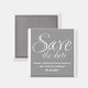 Kalligrafi Spara datum magneter i grått och vitt med sofistikerad typografi. Den här eleganten och chicen spara datum magneter är enkelt att anpassa med dina uppgifter om bröllop. Om du vill ha fler anpassningsalternativ klickar du på knappen Anpassa.