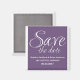 Kalligrafi Spara datum magneter i lila och vitt med sofistikerad typografi. Den här eleganten och chicen spara datum magneter är enkelt att anpassa med dina uppgifter om bröllop. Om du vill ha fler anpassningsalternativ klickar du på knappen Anpassa.