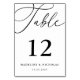 Ett sofistikerat svartvitt bröllop-bordsnummer-kort med elegant-kalligrafi och minimalistisk utformning. Det här bordsnumret i snyggten är perfekt för moderna, formella eller klassiska bröllopsreceptioner och hjälper gästerna att enkelt hitta sina platser. Den rena typografin och den förfinade layouten gör det till perfekt för alla elegant bröllop-teman. Ett enkelt men tidlöst tillägg till bröllop-dekorationen.
