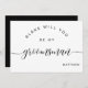 Elegant Groomsman frieri kort med groomsmansfras i handskriven kalligrafi. Kortet är tillbaka i svart ton som kan ändras till vilken annan färg som helst genom att välja att anpassa. Det finns också bäst manliga, vaktmästare och ring-kort.