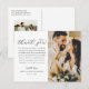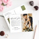 Detta eleganta halv-och-halv tack-kort har en utsmyckad kalligrafisk skrift på vänster sida bredvid ert bröllopsfoto på höger sida, vilket skapar en vacker balanserad design. Det redigerbara meddelandeblocket, "med kärlek"-avslutningen och parets namn och datum är alla helt anpassningsbara. Ett sofistikerat val för par som älskar klassisk kalligrafi i kombination med ett personligt foto.