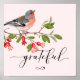 Kalligrafi Tacksam Akvarell Fågel Blomma Rosa Poster