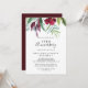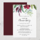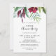 Denna inbjudan till tropisk 50-års bröllopsjubileum med kalligrafi är perfekt för en rustik firande av bröllopsjubileum. Denna förtrollande handmålade design har fina burgunderfärgade, lila blommor och grön lövverk som är snyggt arrangerade i eleganta buketter.