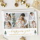 Modern Calligraphy Script Gott nytt år 5 Photo Helgdag Card innehåller Watercolor Gräs Träd. Guld