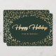 Anpassningsbar grönt och guld kalligrafi-helgdagskort med faux guld foil calligraphy title och snö på en vanlig grönt-bakgrund. Anpassa enkelt dessa minimalistiska kalligrafibaserade helgdagskort med din familj namn och text.