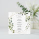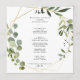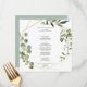 Det här geometriska kalligrafimidmenykortet för den tropiska grönten i guld är perfekt för ett enkelt bröllop. Utformningen har handmålade vackra löv för grönt, som lägger till ett guld-geometriskt ram. Den här menyn kan användas för bröllopsmottagning, repetitionsmiddag, möhippa eller vilken händelse som helst.
