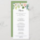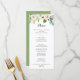 Det här enkla menykortet för grönt med lövning är perfekt för ett tropiskt bröllop. Utformningen har en underbar vit, rosa och handmålad ro inbäddad i gröntens blad, inspirerande konstnärlig skönhet. Den här menyn kan användas för bröllopsmottagning, repetitionsmiddag, möhippa eller vilken händelse som helst.
