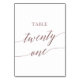 Det tjugoett bordsnumret ro i elegant är perfekt för ett enkelt bröllop. Neutraltens utformning har ett minimalistiskt kort som är dekorerat med romantisk och vismisk faux-folie ro guld typografi. Kortet skrivs ut på framsidan och baksidan (dubblan). Andra bordsnummer i samlingen säljs separat. Obs! Den här utformningen har inte äkta folie av ro guld. Det är en grafik av hög kvalitet som framställs som folie av ro guld.