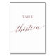 Det trettonde bordsnumret i ro guld är perfekt för ett enkelt bröllop. Neutraltens utformning har ett minimalistiskt kort som är dekorerat med romantisk och vismisk faux-folie ro guld typografi. Kortet skrivs ut på framsidan och baksidan (dubblan). Andra bordsnummer i samlingen säljs separat. Obs! Den här utformningen har inte äkta folie av ro guld. Det är en grafik av hög kvalitet som framställs som folie av ro guld.