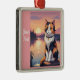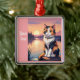 Kalligrafisk katt vid sjö julgransprydnad metall