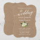 Modern Elegant Kalligrafi Skrift, Vattenfärg Grön Vit Blommig Bröllop Kraft Inbjudan