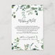 Detta kalligrafiskrift löv bröllop önskebrunn kort är perfekt för ett modernt bröllop. Designen har akvarell handritade eleganta botaniska eukalyptus grenar och blad, arrangerade i vackra buketter och geometriska mönster.