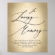 Stilfull svart kalligrafiskrift på falsk guldfolie 'I kärleksfullt minne, minnesmärke för nära och kära som har gått bort' bröllopsskylt.