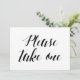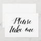 Kalligrafistil "Vänligen ta en" bröllopsskylt Inbjudningar