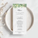 Det här gröna botaniska kalligrafmidmenykortet för lövlövning är perfekt för ett enkelt bröllop. Denna vackra vattenfärgsdesign har en botanisk grönt bladverk. Den här menyn kan användas för bröllopsmottagning, repetitionsmiddag, möhippa eller vilken händelse som helst.