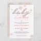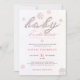 En enkel, modern, elegant och chic inbjudan för en baby shower-fest för flicka med en texturerad, vintervit bakgrund med mjuka rosa överlägg, ordet BABY täckt med rosa rhinstenar (inte äkta rhinstenar, detta är en digital effekt) och i modernt kalligrafiskt typsnitt, modern typografi och några rosa rhinstenar täckta snöflingor. En chic, tidlös design för en blivande mamma som firar sin baby shower under vintermånaderna, november, december eller januari eller till och med därefter, så länge det finns snö!