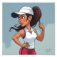 Tecknad Kamala Harris i sportkläder och hatt