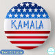 Kamala Harris Supporter Volunteer Fläkt Anpassningsbar Text-knapp. För en Kamala Harris-supporterkonstruktion från presidentvalet i kampanj, en djärv och kraftfull utformning som kombinerar typografi och patriotiska symboler för att skapa ett slående visuellt påstående. I mitten av konstruktionen finns Kamala Harris namn i stor, elegant typografi. Använda ett modernt typsnitt för att förmedla en känsla av framåtblickande tänkande och framsteg. Om du vill öka designens visuella attraktionskraft lägger du till en subtil, polerad avsluta med en skuggeffekt, som ge typografin till ett djup och en dimension. Detta synsätt lyfter inte bara fram Kamala Harris namn, utan garanterar också att flagga färg och mönster framträder på ett kraftfullt sätt. Syftet med denna produkt är att fira Kamala Harris kandidatur med ett starkt patriotiskt fläkt, genom att använda typografi och USA:s flagga för att skapa ett kraftfullt, stödjande påstående för hennes president kampanj.
