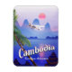 Kambodjas reseaffisch "Travel in i Äventyr" vintage stil på kvällen med ett lätt flygplan som flyger lågt över landskapet.