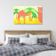 Denna clipart presenterar 2 kamel i öknen nära några palmträd.