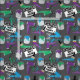 Målare och dekorator, mönstrad väv, med färgkrukor, färgvältar och smärtstillande penslar