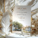 Notera bröllop med Södra elegansen med hjälp av detta vackra inbjudningssvit, med en charmerande vattenfärgsillustration av Kaminski House Museum i Georgetown, South Carolina. Inbjudan till presenter är en bild av det statligt vita huset, med lush grönt träd, och en antydan om ett rött gatehouse. Scenen återges i en mjuk, konstnärlig vattenfärg i stil, vilket framkallar en känsla av söderut, tradition och romantik. Den omvända sidan, designad för "The Finer Details", fortsätter eleganten med samma ikoniska Kaminski House Museum, vilket möjliggör en sammanhängande presentation. Den mjuka vattenfärgen stil ger en romantisk känsla. Det är idealiskt för ett sydtemat bröllop, en trädgård party firande, eller för ett par som vill ha ett klassiskt och raffinerat estetiskt för sin speciella dag.