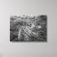 Ett svart och vitt foto av ett hugget träd som arrangeras i pilar i undervegetationen. Kammad i fyra och sepia tonad.