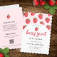 Fira din lilla en på väg med vårt färdiga babyshow-inbjudningskort "Berry Sweet" med en ram i vågig stil, prydd med ett sött rosa och rött jordgubbsmönster mot en ren vit valvformad bakgrund. Modern typsnittsstil lägger till en elegant touch och skapar en fräsch och lekfull design som är perfekt för en baby shower för flicka. Den livliga röda jordgubbsrutiga mönstret på baksidan knyter samman utseendet på ett vackert sätt. Perfekt för en sommarfirande är denna charmiga inbjudan det perfekta valet för en jordgubbsinspirerad baby shower, för en blivande mamma som söker ett budgetvänligt alternativ. Denna inbjudan innehåller en blivande-mamma-lottteri och plats för önskade barnböcker på baksidan av kortet.