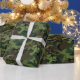 Inpackning pappert designat med ett oliv grönt och brunt kamouflagemönster.