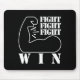 Vit silhuett av en flexed arm-muskel med ord ’Fight, Fight, Fight, Win’