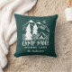Upp med campingspelet eller lägg till en anpassningsbar vid RV eller videokameran med den här söta personligen dekorativ kudde. Grönten "Läger mer, oroa mindre" i ett nödsakat, vitt brev under ett hand plockade illustrerar en camping tält i en gräs-skog med ett halvmåne måne stigning över bergstopparna vid snö. Perfekten att hedra minnet av ett speciellt resa, eller för vem som helst som kärlek campar, kan du anpassa dekorativ kudde med ditt textval under designen. Lägg till ditt campingmål, året eller en familj namn för en speciell beröring.