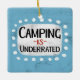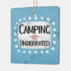 "Camping Is Underrated" är en roligt- och chunkitextdesign som innehåller en vit accentform omgiven av söt vit polka dots.