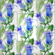 Vacker blått och grönt Campanula blomsterskyddad väv. Botaniskt upprepat mönstrat tyg i blå nyans och grönt mot ljusbakgrund. Ursprunglig vattenfärgsmålning av Sarah Trett.