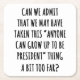 För alla dem som ser med misstro när den nuvarande administrationen klämmer ihop, uttrycka sig med detta: "Kan vi erkänna att vi kan ha tagit det här vem som helst kan växa upp för att bli president Sak lite för långt?" design.