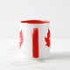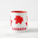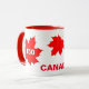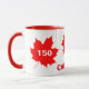 Tre röda löv flyger under höstens vind. Nummer 150 inuti lämnat och höger blad. Röda ord Kanada under mitten löv. Snyggt elegant rött och vitt kaffe mugg för vem som helst att fira 150-årsdagen av Kanada. Anpassade. Du kan ändra stil i mugg och ändra eller ta bort bilder och texterna för att anpassa produkten. Ha roligt.