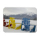 COPYRIGHT Cindy Miller Hopkins / DanitaDelimont.com | CN01 CMI0065.jpg | Kanada, Alberta, Jasper, Jasper NP. Fairmont Jasper Park Lodge. Färga stolar runt fryst sjö, Lac Beauvert.
