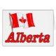 Storrött brev förklarar provinsen namn Alberta, där en vågigt kanadensisk flagga flyger bakom den. Den här designen finns på ett stort antal t-shirts, gåvor och andra kläder.
