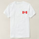 På framsidan av denna t-shirt bär en liten kanadensisk flagga med sitt välkända rödaple löv över vitt och rött, medan baksidan visningar en lättnad karta i Kanada. Finns på t-shirts, sweatshirts, polos, Long-sleever med mera.