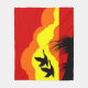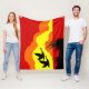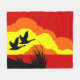 Gästsilhuett från Kanada i orange och rödsolljus med solbelysta moln av gult och svartsilhuetteblad i förgrund