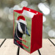 Den storleka julklappen med röd trim som innehåller den vita fotobilden av en Kanada Goose som bär en röd julhatt och halshöljet. Välj din presentväska stil. En roligt, djurdesign för helgdagarna!